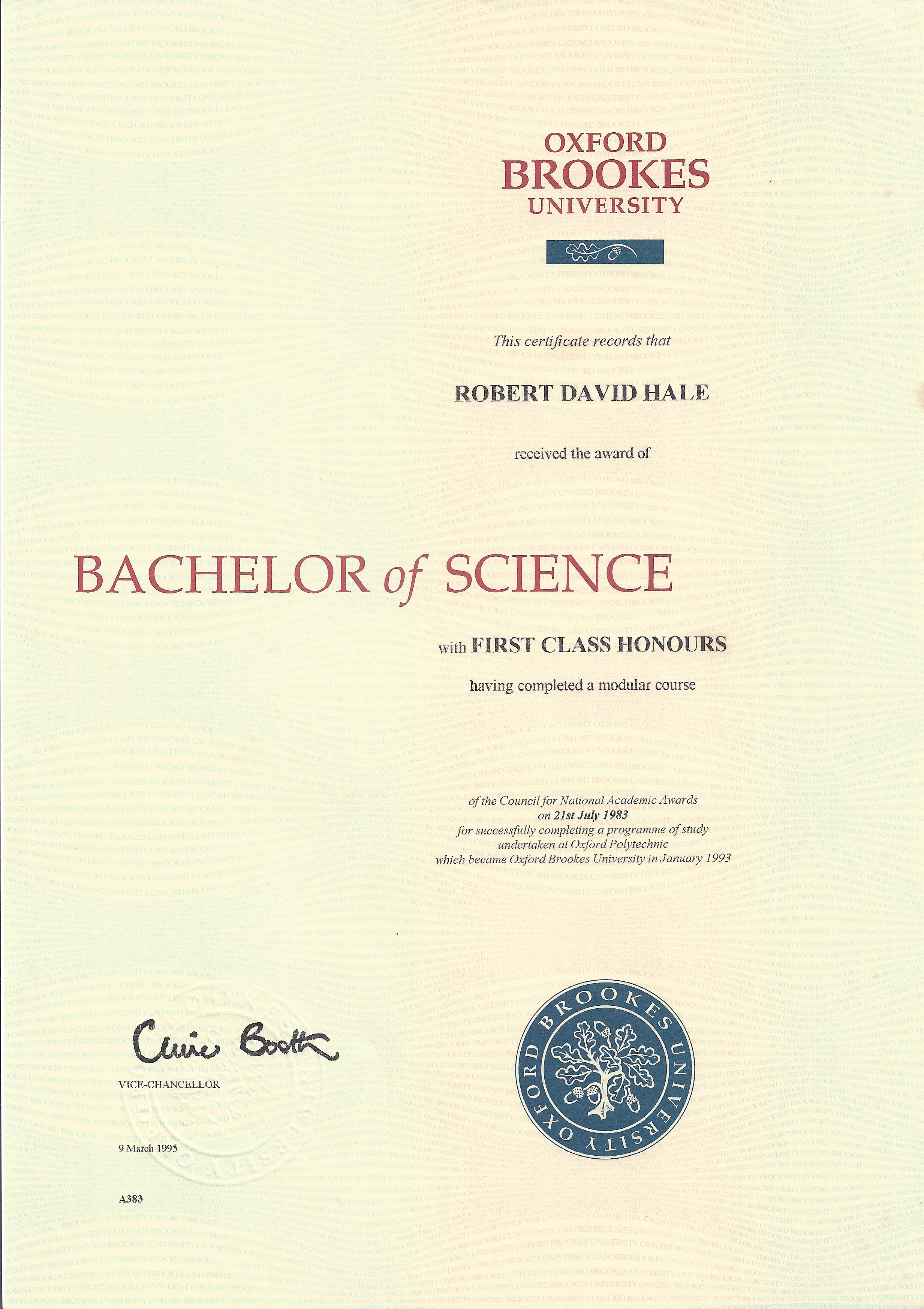 - Licenciatura (con honores) en Biología con especialización en Ciencias de la Alimentación y Nutrición – Oxford Polytechnic (ahora Oxford Brookes University) – 1983.
