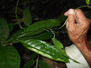 Ah Kau is of the Temuan tribal people, and is of the last generation with much knowledge about the medicinal plants of the forest. He speaks no English, and I was told his Malay is very colloquial and mixed with his tribal language. Through Haanim Bamadhaj of the Dusun and other staff there, I asked him to point out medicinal plants to me and to tell me their names very clearly. Ah Kau has special knowledge of the medicinal uses of many plants in the rain forest around his village, especially those used for obstetric purposes.