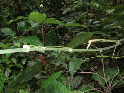 I have written the name of this plant as I heard it. This would translate literally as “Wood Rope”. I understood Ah Kau to say it is used for stomach aches. I also heard him use the word madu (honey). I hesitate to draw conclusions. This information needs verification. (Plant added March 2019.)