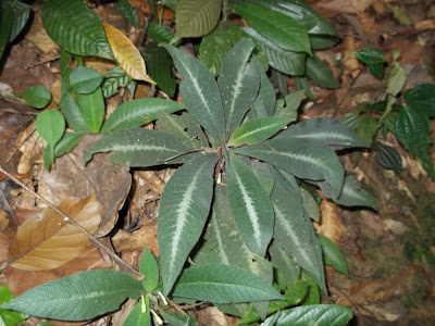 The first photo above was taken in 2013, the second in 2019. At first site I thought Ah Kau must be mistaken, they look like leaves from different species of plants. But then I noticed the close spacing of the transverse veins in both photos. A search for “Labisia pumilia leaves” in Google Images confirms that the shape of the leaves may vary substantially, from broader to narrower. I suspect it depends upon the exact variety and/or age of the plant.