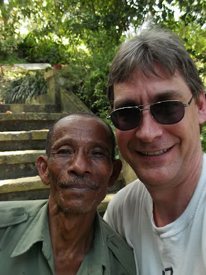 During our treks through the jungle (and a substantial part of the first trek was off-piste), Ah Kau walked all the way very ably in just a pair of plastic flip flops. During the second trek, which involved a steep climb to the top of the mountain Gunung Berembun (1014 m), he left his flip flops by the trail before the ascent, and from there went bare foot until we had descended again and walked back to the point where he had left them.